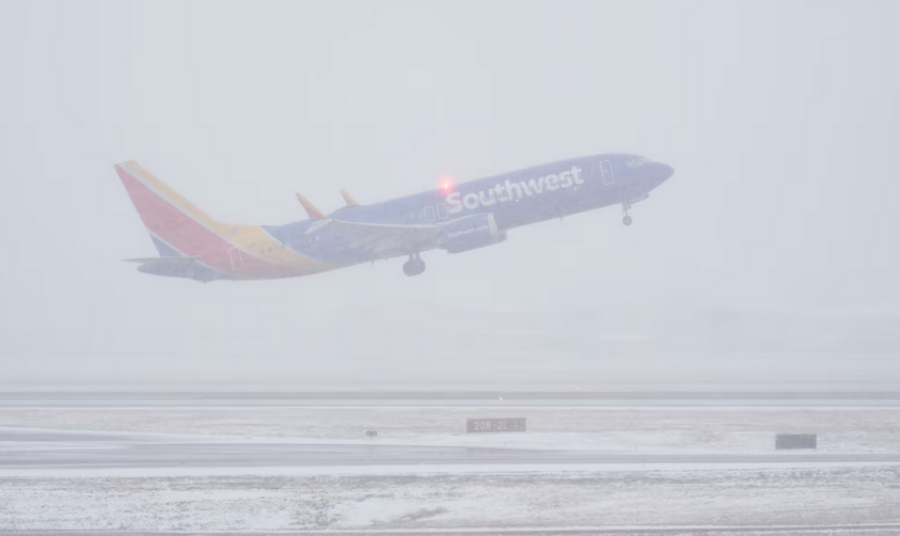 Un avión de Southwest Airlines despega en medio de una nevada (Associated Press/George Walker IV)