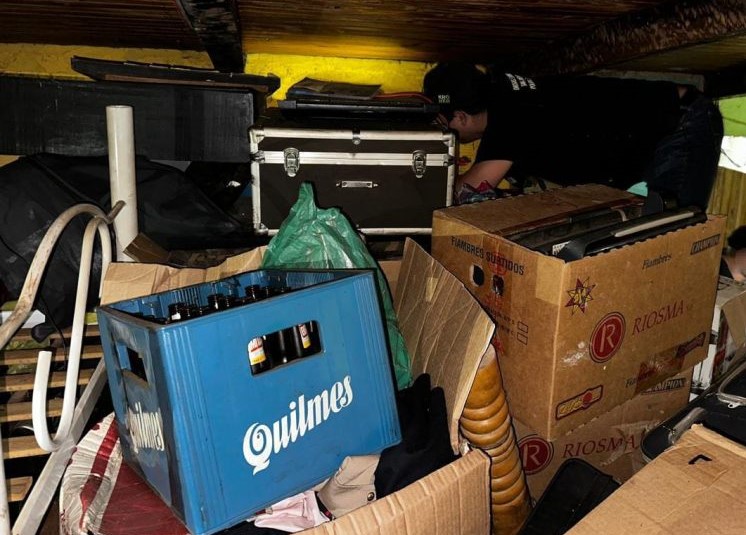 Durante el operativo, los uniformados secuestraron varios elementos de interés para la causa: una bicicleta marca Volta rodado 29, una motoguadaña, diez cajones de plástico de cerveza de distintas marcas con envases vacíos, y una amoladora.