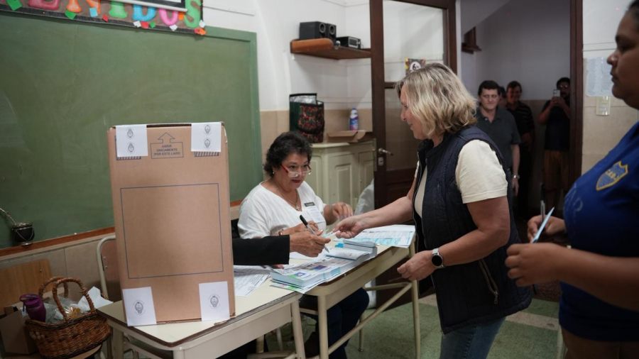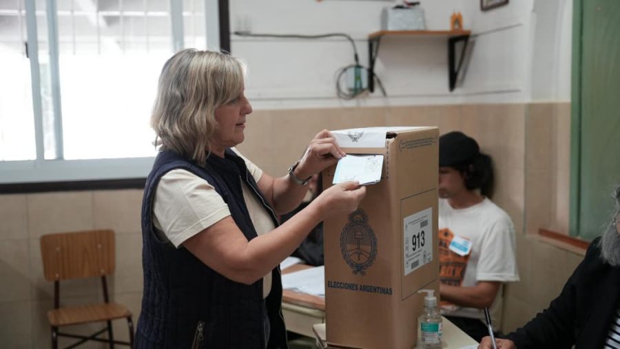 La intendente del Municipio misionero de Apóstoles, María Eugenia Safrán, emitió su voto en la mesa 913 del Instituto Superior Cristo Rey durante la jornada electoral de este domingo.