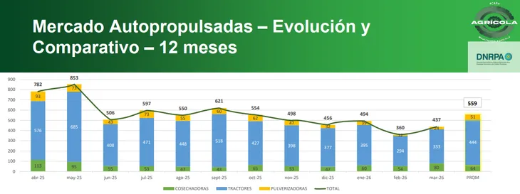 La Asociación de Concesionarios de Automotores de la República Argentina (ACARA) informó que en el tercer mes del año se registraron 437 patentamientos, un 21,4% más que en Febrero y un 24,1% más que en marzo de 2025. Dado que es el segmento más relevante dentro la maquinaria agrícola, la mejora fue explicada fundamentalmente por los incrementos en tractores.