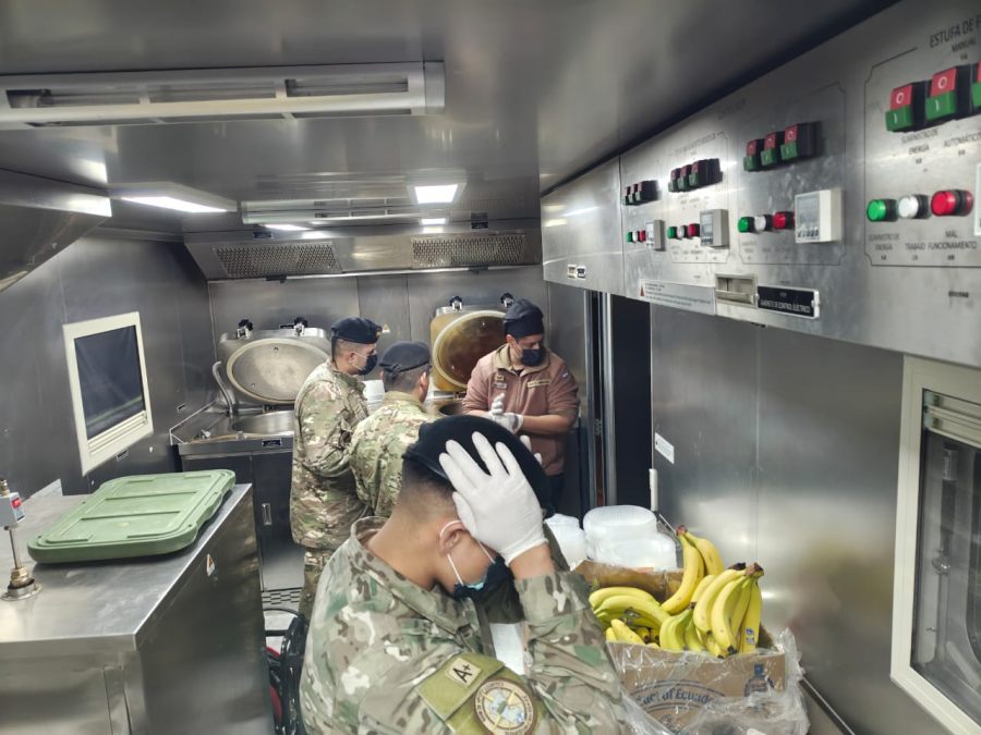 Los elementos dependientes de esta Gran Unidad de Combate brindan apoyo mediante la elaboración y distribución de 300 raciones diarias en distintos puntos de la ciudad, y permanecen en apresto para realizar nuevas tareas en apoyo a la comunidad.