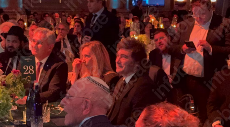 Javier Milei, Karina Milei y Pablo Quirno durante una cena organizada por la comunidad judía en New York, (Estados Unidos)