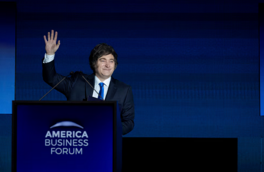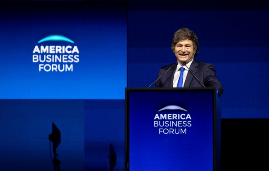 Javier Milei elogió a Donald Trump y Lionel Messi en su discuso en el America Busness Forum. Foto - Reuters/Marco Bello