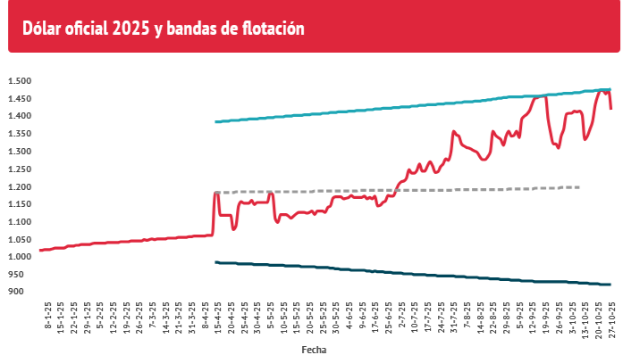 “Durante el desarrollo de la rueda, el tipo de cambio alcanzó la zona de 1.385 pesos, donde pareció encontrar cierta resistencia, aunque sin lograr consolidar un equilibrio. La ausencia de ventas del Tesoro norteamericano en la jornada acentuó la presión alcista, y la divisa llegó a superar los 1.400 pesos, para finalmente cerrar en 1.435 pesso″, completó Nicolás Merino.