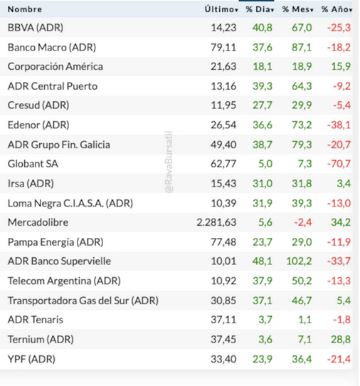 Los analistas de Rava Bursátil destacaron que “La rueda del lunes 27 quedará en los libros de historia.