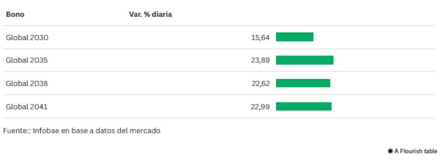 La aceleración en la cotización de los títulos argentinos tomó como única base el cierre del viernes pasado, cuando los valores reflejaron expectativas previas a los resultados electorales.