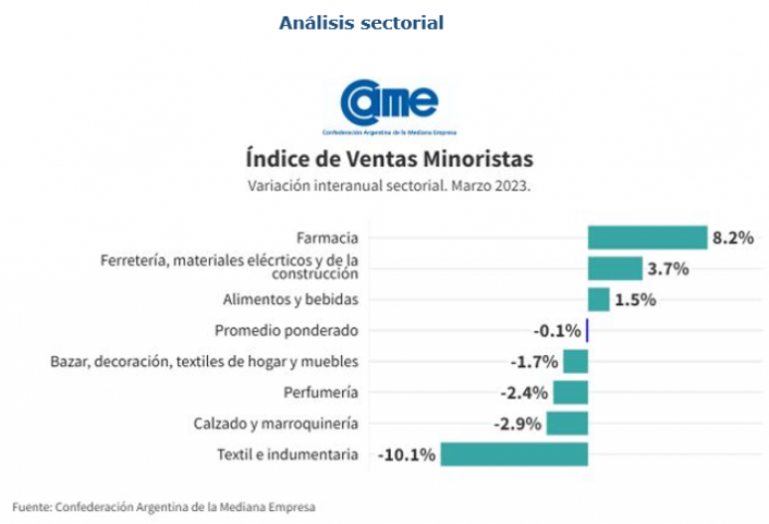 Así surge del Índice de Ventas Minoristas PyMEs de la Confederación Argentina de la Mediana Empresa (CAME), elaborado en base a su relevamiento mensual entre 1.184 comercios minoristas de todo el país, realizado entre el 3 y 5 de Abril.