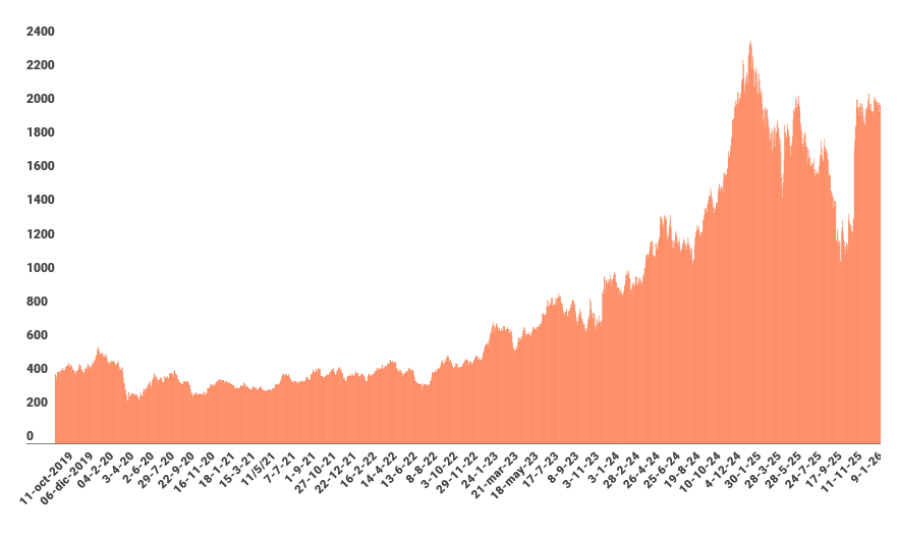 Puntuación en dólares del índice S&P Merval desde el 30/8/2019