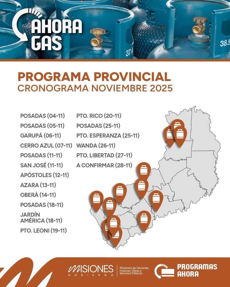 Y el resto de los días estará en los municipios de; Garupá (jueves 6), Cerro Azul (viernes 7), San José (martes 11), Apóstoles (miércoles 12), Azara (jueves 13), Oberá (viernes 14), Jardín América (martes 18), Puerto Leoni (miércoles 19), Puerto Rico (jueves 20), Puerto Esperanza (martes 25), Wanda (miércoles 26) y Puerto Libertad (jueves 27).