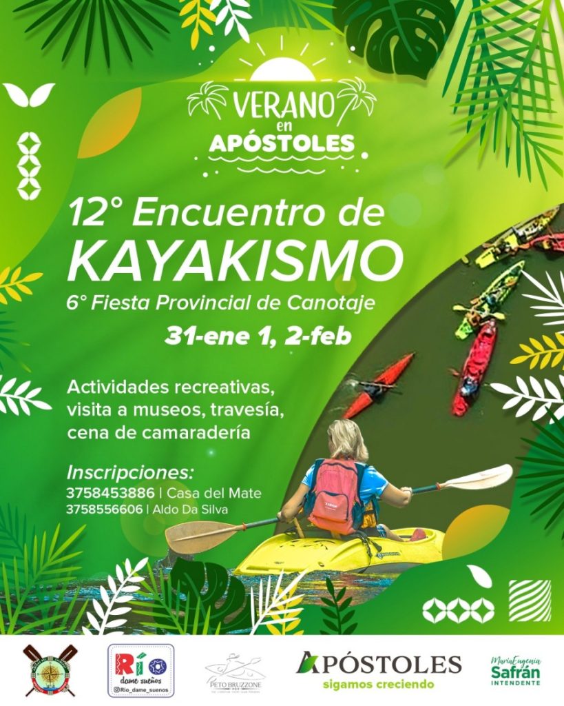 La Municipalidad del Municipio misionero de Apóstoles, en conjunto con la Asociación Amigos del Chimiray, anuncia la realización del 12° Encuentro de Kayakismo y la 6° Fiesta Provincial de Canotaje, un evento que se ha convertido en un clásico del Verano del sur de la provincia.