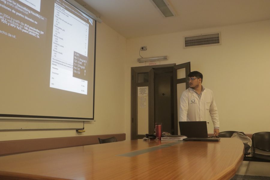 El Dr. Luciano Duarte, residente del Servicio de Cirugía Plástica, presentó un caso de fascitis necrotizante en el miembro inferior, enfatizando la importancia del diagnóstico y tratamiento precoz. “Vamos a concentrarnos en el manejo, en el diagnóstico y en la importancia del tratamiento quirúrgico temprano”, señaló el especialista.