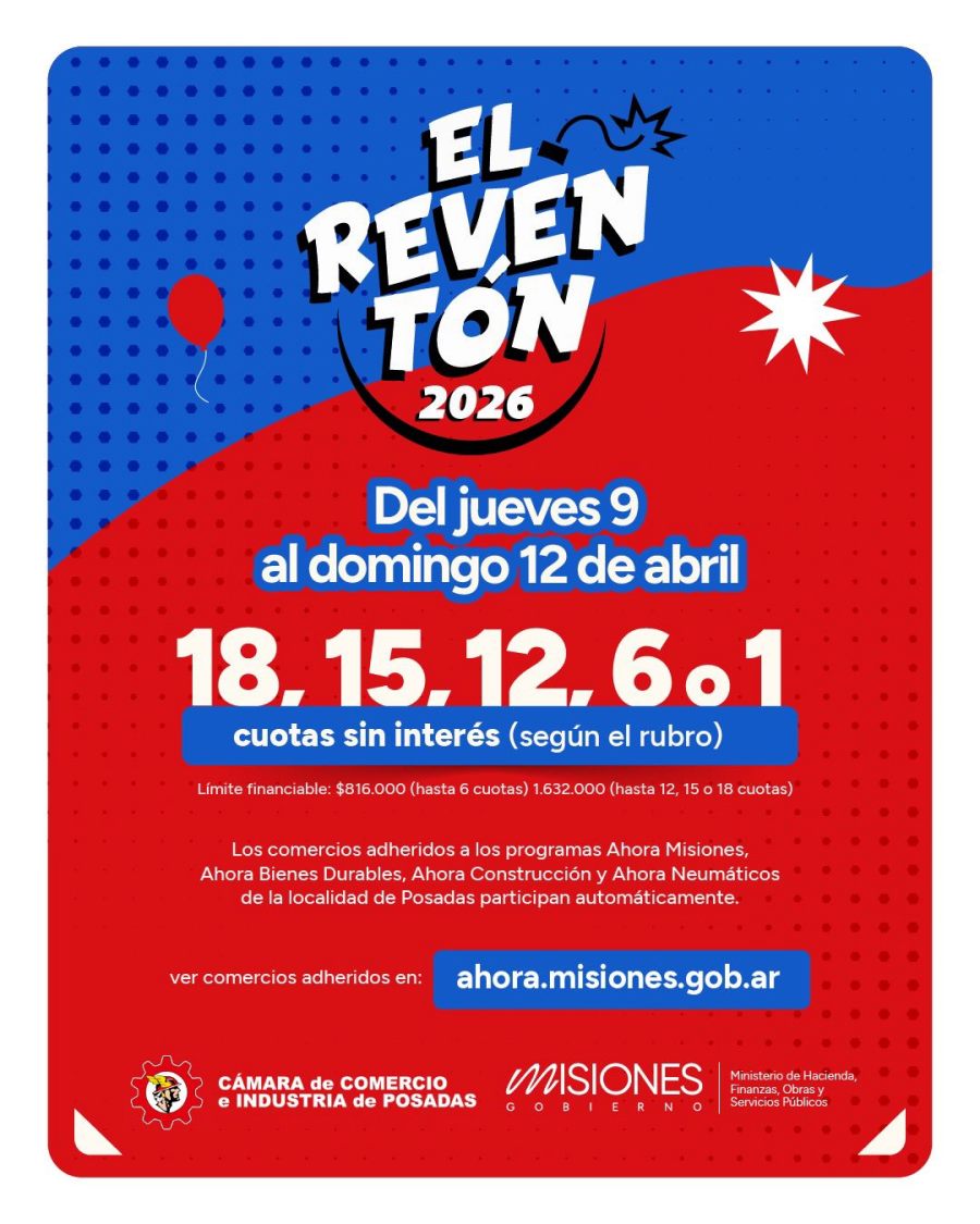De este día jueves 9 al domingo 12 de Abril, inclusive se llevará adelante en la ciudad misionera de Posadas la 11° edición del "Reventón" este evento comercial, turístico y cultural que ofrecerá descuentos y financiamiento sin interés en los comercios adheridos, espectáculos en vivo y una feria gastronómica en el microcentro.