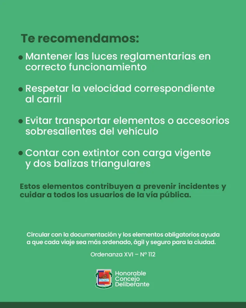 Desde el Honorable Concejo Deliberante de la ciudad de Posadas recordaron la importancia de portar todos los papeles exigidos por la normativa municipal vigente, con el objetivo de evitar infracciones y garantizar la seguridad vial.