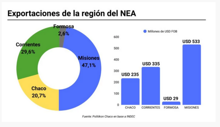 Los datos oficiales del INDEC revelan que la provincia de Misiones concentró el 47% de todas las exportaciones de la región, una participación que superó holgadamente a las jurisdicciones vecinas.