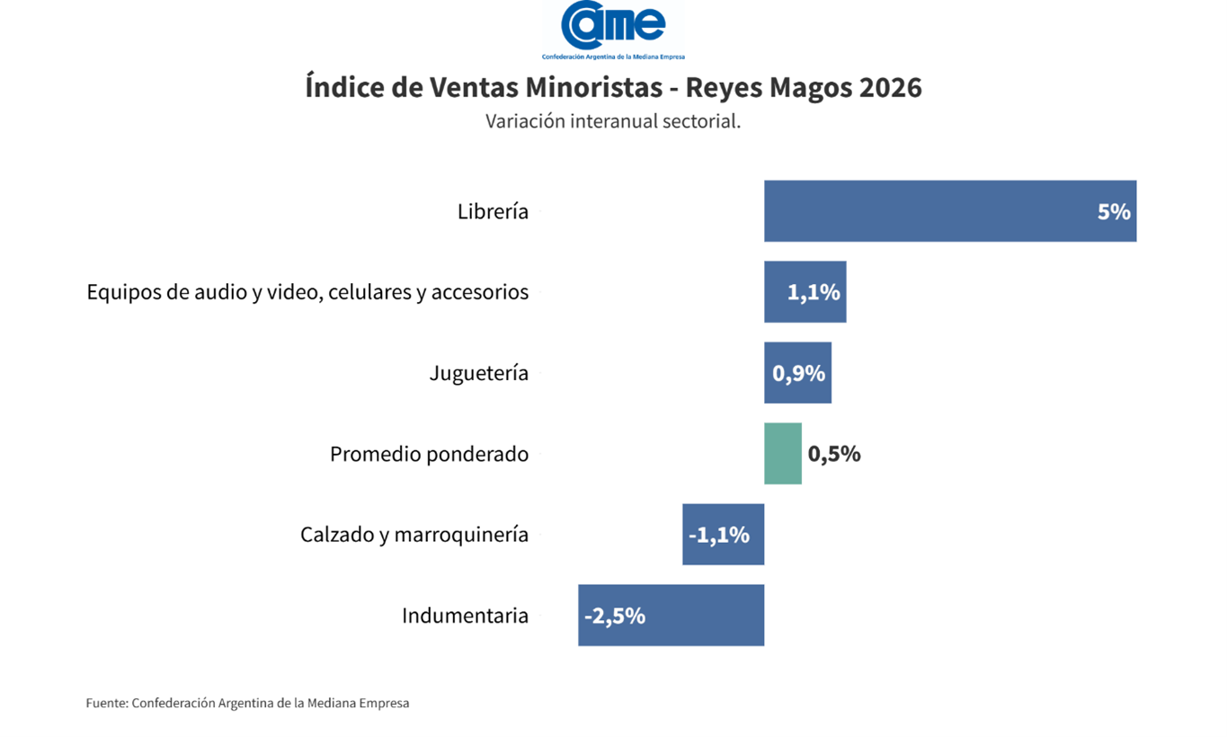 Las ventas de los comercios minoristas PyMEs por la llegada de los Reyes Magos 2026 crecieron 0,5% frente a la misma fecha de 2025, medidas a precios constantes.