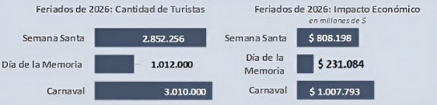 - De acuerdo con el relevamiento de la Confederación Argentina de la Mediana Empresa (CAME), el tercer fin de semana largo del año movilizó a 2.852.256 turistas en todo el país, quienes generaron un impacto económico directo de 808.198 millones de pesos en alimentos, bebidas, alojamiento, transporte, recreación y compras.