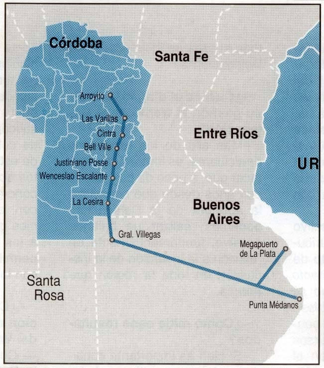 El trayecto “subía” a la vía navegable a ciudades como Las Varillas, Cintra, Bell Ville, Justiniano Posse, Wenceslao Escalante y La Cesira. Y en General Villegas, en el noroeste bonaerense, tomaba la dirección del río Salado hacia el mar.