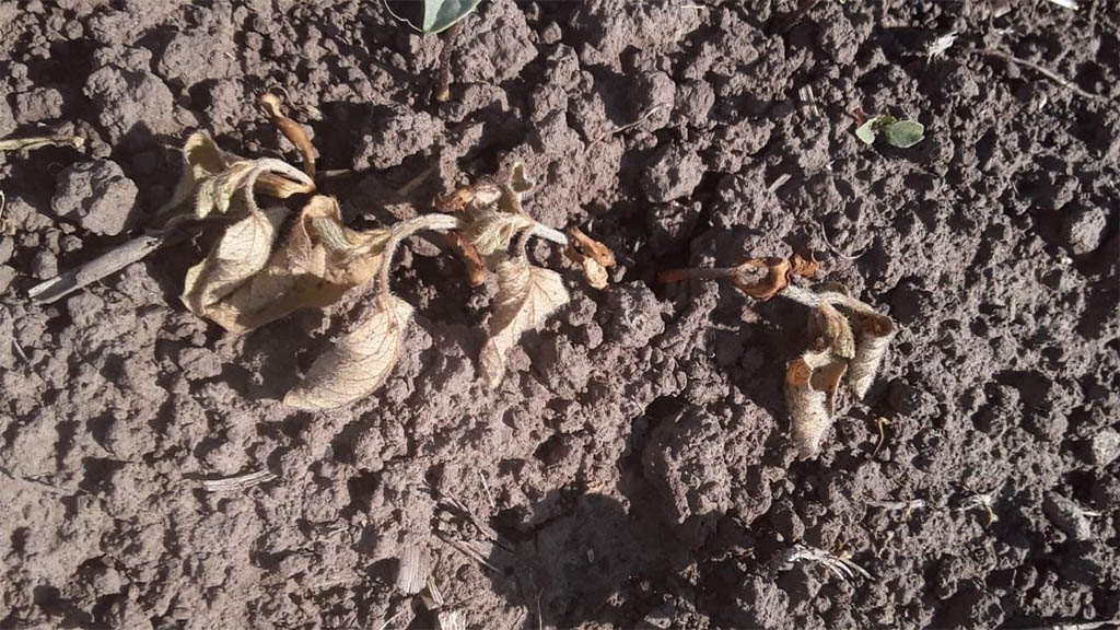 Los técnicos que reportan a la entidad expresaron que en Bigand, la falta de agua y el calor extremo, “prácticamente quemante para el cultivo, lo han dañado al punto de borrar de la superficie un 15% de lo implantado”. Cerca de Villa Mugueta, los lotes laboreados también empezaron a secarse. En Corral de Bustos reportan problemas de “carry-over”, ya que por la falta de agua y las bajas temperaturas del invierno no se degradaron los herbicidas residuales y hoy hay efectos de fitotoxicidad en las sojas de primera con herbicidas aplicados en el otoño y hasta algunos se remontan a aplicaciones del verano pasado.