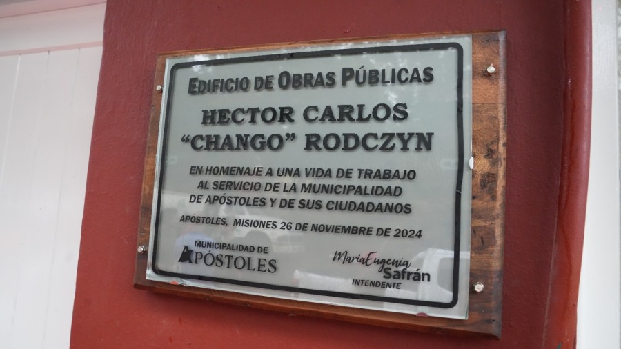 En una emotiva ceremonia, la Intendente de la ciudad misionera de Apóstoles, María Eugenia Safrán, junto al Sacerdote, P. Ignacio Slobodian OSBM de la Iglesia Santísima Trinidad del Rito Bisantino Ucraniano, el Presidente del Honorable Concejo Deliberante, Artemio Tarnowski, el Secretario de Obras Públicas Juan Pablo Cazut, el Secretario de Industria, Alfredo Rau, familiares y ex compañeros de trabajo rindieron homenaje a Carlos Héctor "Chango" Rodczyn, un hombre que dedicó su vida al servicio de la comunidad del Municipio de Apóstoles.