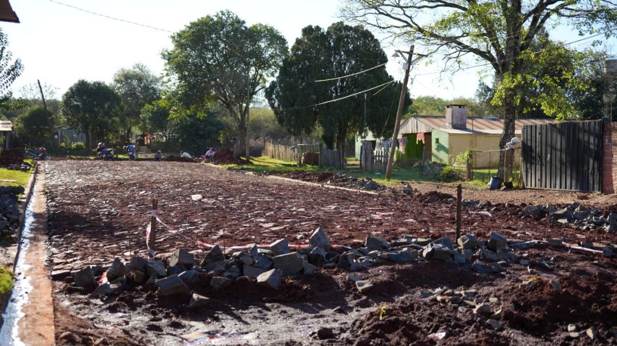 La Municipalidad de la ciudad misionera de Apóstoles continúa con los trabajos de empedrado y construcción de cordón cuneta en diferentes barrios. En el Barrio Santa Bárbara, se están realizando labores en la intersección de calles Catamarca y Córdoba para mejorar la circulación vehicular y la seguridad.