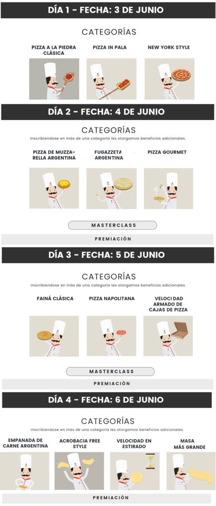 Para inscribirse en el Mundial, el aspirante deberá acreditar la existencia actual o antecedente en la actividad gastronómica relacionada a la pizza y/o empanada en cuanto a su preparación, y además deberá acreditar ser mayor de 18 años de edad.