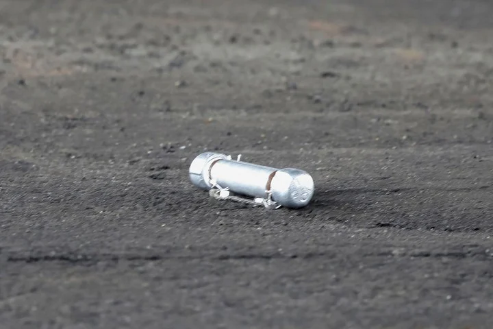 El objeto sospechoso que se encontró en el suelo del puerto de la ciudad de Wakayama. Foto: AP