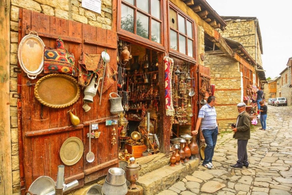Uno de los destinos turísticos más famosos de Azerbaiyán porque aún hoy el pueblo tiene docenas de talleres que fabrican productos de cobre hechos a mano.