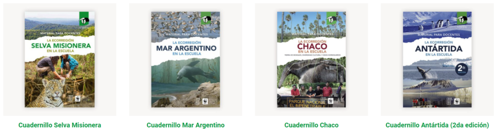 En la web: www.educacion.vidasilvestre.org.ar podrán acceder a materiales para todos los ciclos escolares sobre diferentes líneas de educación ambiental (consumo responsable, arte, salud, valores y naturaleza) y cinco cuadernillos ecorregionales: Antártida, Chaco, Pampas, Mar argentino y selva misionera.