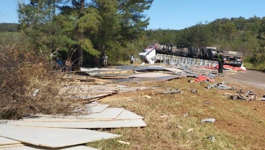 En la mañana de esteb día miércoles 10 de Septiembre, un camión Mercedes Benz que circulaba por la Ruta Provincial N° 211, en el kilómetro 34 en la localidad misionera de Dos de Mayo, despistó y volcó sin que su conductor resultara herido.