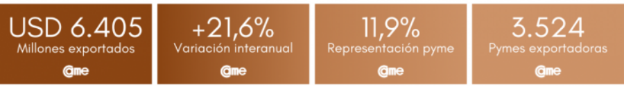Así surge del Monitor de Exportación PyME (MEP), un indicador elaborado por el sector de Estadísticas e Informes de la Confederación Argentina de la Mediana Empresa (CAME), para medir las exportaciones de las pequeñas y medianas empresas de la República Argentina, en base al monitoreo mensual de las operaciones de las empresas argentinas en el comercio exterior (se discrimina por condición pyme declarada ante la Secretaría de la Pequeña y Mediana Empresa, Emprendedores y Economía del Conocimiento, dependiente del Ministerio de Economía de la Nación).