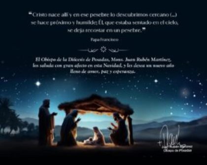 En esta Navidad participemos de las distintas celebraciones litúrgicas, coloquemos un pesebre en nuestros hogares y recemos juntos, en familia. ¿Rezar? Sí rezar juntos. Seguramente la oración nos permitirá descubrir un nuevo sentido al encuentro familiar y con nuestros amigos. El colocarlo a Jesús en el pesebre de nuestro corazón y de nuestras familias nos permitirá augurar tiempos mejores. Ante la proximidad de la Navidad pido a cada familia y a todos, especialmente a los que están solos, presos o enfermos, que preparemos nuestro corazón en la esperanza, porque el Niño Dios está por nacer.