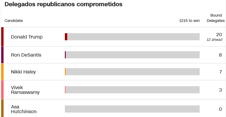 La atención se centra ahora en la contienda por el segundo lugar en las primarias de Iowa. El gobernador Ron DeSantis terminará en segundo lugar en los caucus republicanos de Iowa, según una proyección de CNN Decision Desk. Para el gobernador de Florida, que durante mucho tiempo se presentó como la alternativa conservadora a Trump, terminar detrás de Haley podría resultar fatal en términos políticos.