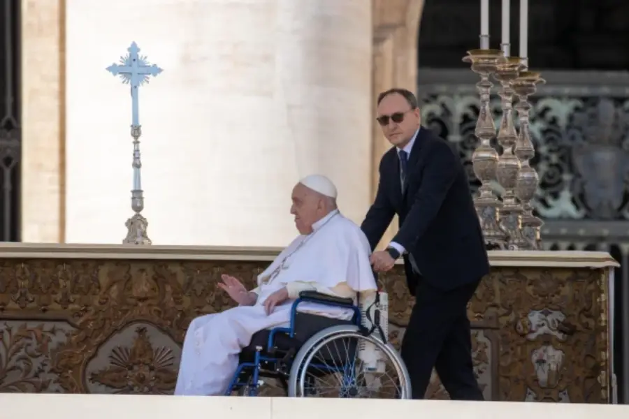 El Papa, en silla de ruedas llegando al altar de la Plaza de San Pedro. Foto.- Crédito - Daniel Ibañez/EWTN News