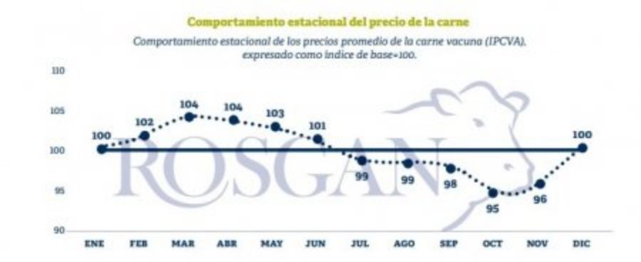 A pesar de este comportamiento, el informe subraya que nos encontramos en un período del año donde el precio de la carne vacuna suele registrar sus mayores subas estacionales.
