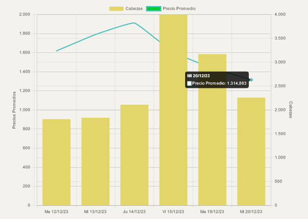 En el caso de las vaquillonas, que habían logrado un pico de precio de 1.824 pesos, tuvo una fuerte caída el último miércoles, llegando a un mínimo de 1.271 pesos.