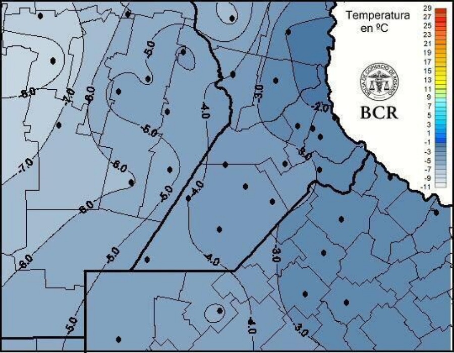 Cristian Russo, jefe de la Guía Estratégica para el Agro (GEA) de la BCR, precisó que este fenómeno climático se registró este último viernes, pero ya había comenzado el día anterior dónde en Hernando la mínima fue de -8,8°C.