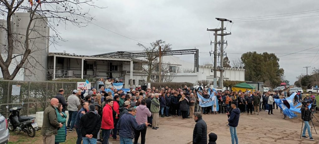 Con la adhesión de 37 entidades de productores, industriales, empresariales, e incluso particulares, la convocatoria superó las 300 personas que se apostaron frente a la planta industrial, después del ingreso del último camión con leche que ingresó este sábado y que será procesada recién el lunes por la mañana.