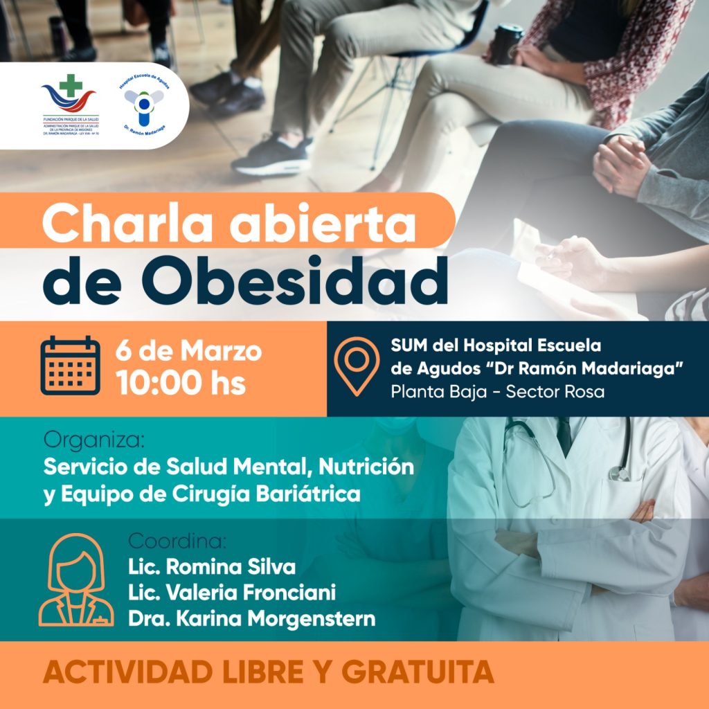 Son actividades conjuntas a cargo del Servicio de Salud Mental y Nutrición. Este miércoles 6 de Marzo harán una charla abierta sobre Obesidad en el SUM del Hospital Madariaga desde las 10 hs. Es una actividad libre y gratuita para todos los que quieran participar. Será en planta Baja sector Rosa. La charla será coordinada por la Lic Romina Silva, Lic Valeria Franciani y la Dra Karina Morgenstern.