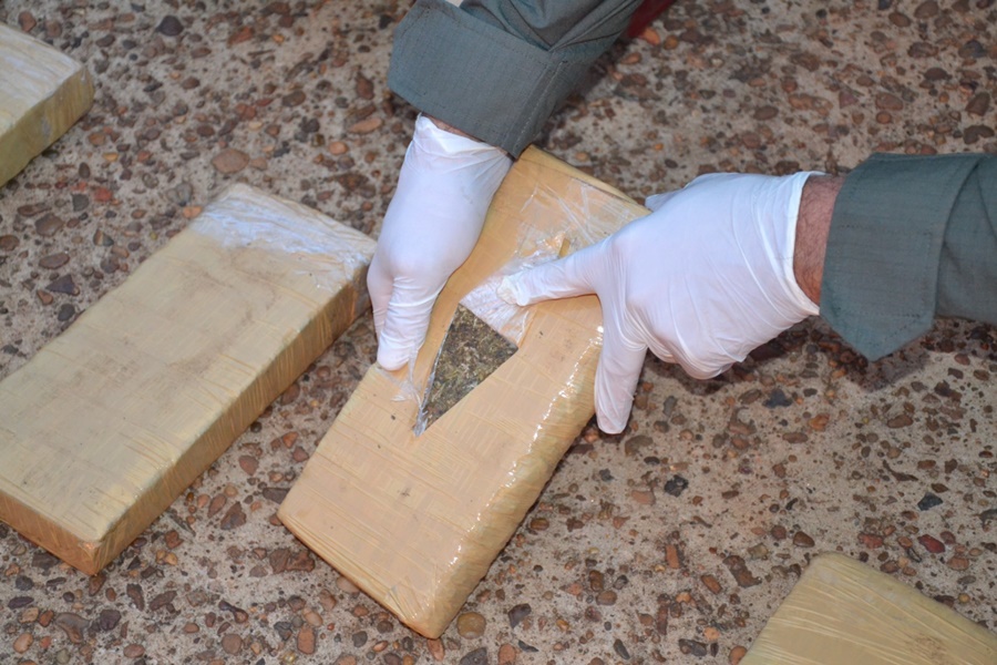 Personal perteneciente al Escuadrón 57 “Santo Tomé” procedió con la apertura de dos encomiendas en horas de la tarde. Ante la presencia de testigos, se constató que en el interior de los bultos se encontraban acondicionados nueve paquetes rectangulares envueltos en cinta.