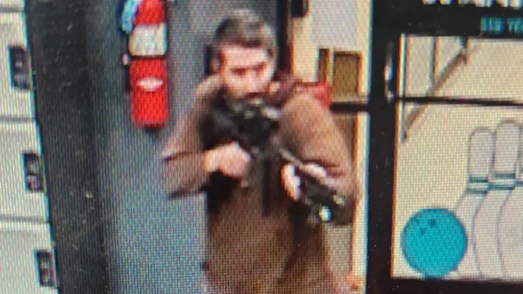 La oficina del Sheriff del condado de Androscoggin publicó una imagen que se cree que corresponde al sospechoso en Lewiston, Maine.