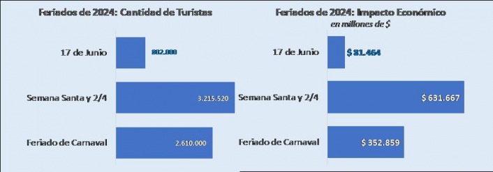 En lo que va del año hubo 3 fines de semana largos, donde se movilizaron 6,6 millones de personas y desembolsaron 1.065.990 millones de pesos (1.169 millones de dólares a dólar oficial del BNA).