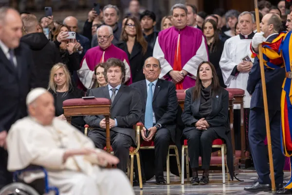El Presidente de Argentina, Javier Milei, llegó a la basílica junto a la delegación del país unos 20 minutos antes de que diera comienzo la Eucaristía. Tras saludar a algunos de los más de 500 argentinos presentes, ocupó su lugar en una de las primeras filas del lado derecho del altar.