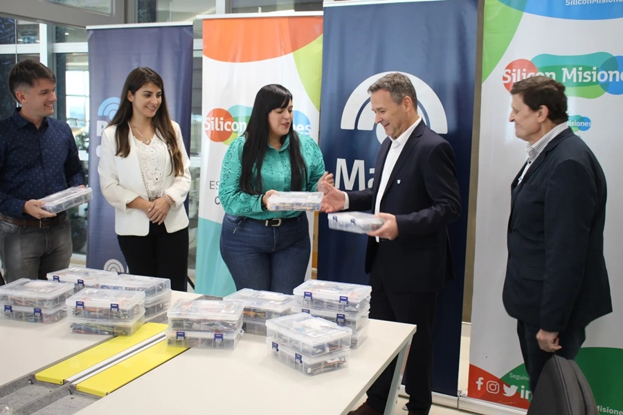 Días atrás, el Ministro de Hacienda de la provincia de Misiones, Adolfo Safrán junto a Diego Robollini, Gerente Divisional de Banco Macro; Lucas Romero Spinelli, Diputado Provincial y Vicegobernador electo; y Siomara Vitto, Subsecretaria de Silicon Misiones; participaron en el acto de entrega de Fundación Macro de 75 kits de robótica destinados al Proyecto “Sumá tu Escuela”, cuyo objetivo es fortalecer los Espacios Maker de la provincia de Misiones.