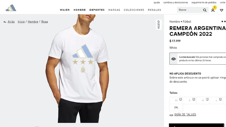 Y lo cierto es que la misma se encontraba disponible en la página oficial de las tres tiras en Francia (https://www.adidas.fr/argentina-22-winners-home-jersey/IB3597.html).