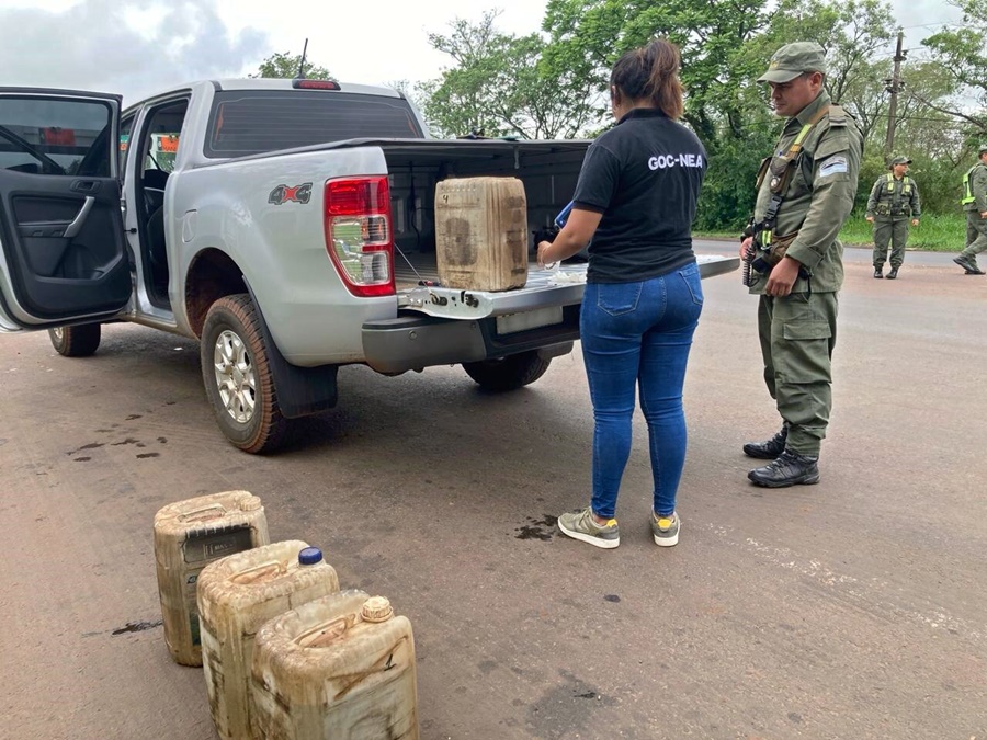 En momentos cercanos al mediodía, integrantes del Grupo Vial “Jardín América” procedieron a detener la marcha de un transporte de cargas generales proveniente de Brasil, conducido por una persona de sexo masculino de la misma nacionalidad, que tenía como destino final Santiago de Chile. Del control físico del rodado se constató la presencia de 4 bidones etiquetados como solución de urea (agente reductor de emisiones de óxidos de nitrógeno, evitando que estos gases contaminantes provenientes de la combustión en motores diésel), cuyas tapas se encontraban con los sellos rotos, indicativo que su contenido podría encontrarse adulterado.