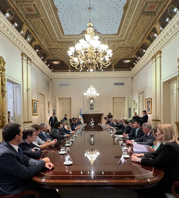 La reunión comenzó pasadas las 15,00 horas del día viernes en Casa Rosada y se extendió hasta las 19,00 horas. La mesa de diálogo estuvo encabezada por Francos y Posse, y todas las provincias estuvieron presentes, aunque cuatro mandatarios no pudieron asistir y fueron representados por sus vices. Se trata de Maximiliano Pullaro (Santa Fe); Gildo Insfrán (Formosa); Ricardo Quintela (La Rioja) y Alfredo Cornejo (Mendoza).