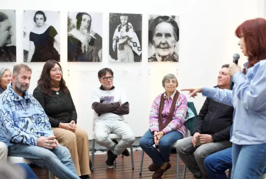 El padre Juan Carlos Molina, de celeste, en el encuentro con Cristina Fernández de Kirchner