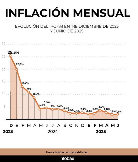 La inflación del mes de Junio fue de 1,6% y se mantuvo en un nivel similar respecto al mes anterior, informó este lunes el INDEC. La suba de precios del último año, de esta manera, alcanzó el 39,4 por ciento.