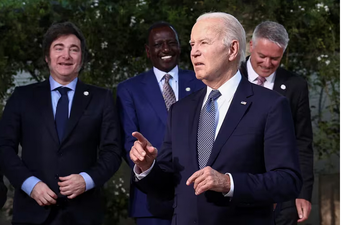 Milei junto a Biden en la foto oficial (REUTERS/Guglielmo Mangiapane)