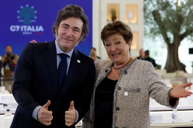 Ante los mandatarios de los países más importantes del mundo, reunidos en Italia en ocasión de la cumbre de líderes del G7, el presidente argentino, Javier Milei, defendió el libre uso de la inteligencia artificial, saludó al Papa Francisco, habló con su par de los Estados Unidos, Joe Biden, y se fotografió con la directora del FMI, Kristalina Georgieva. Luego participó de la foto oficial y posteriormente comenzó las reuniones bilaterales.